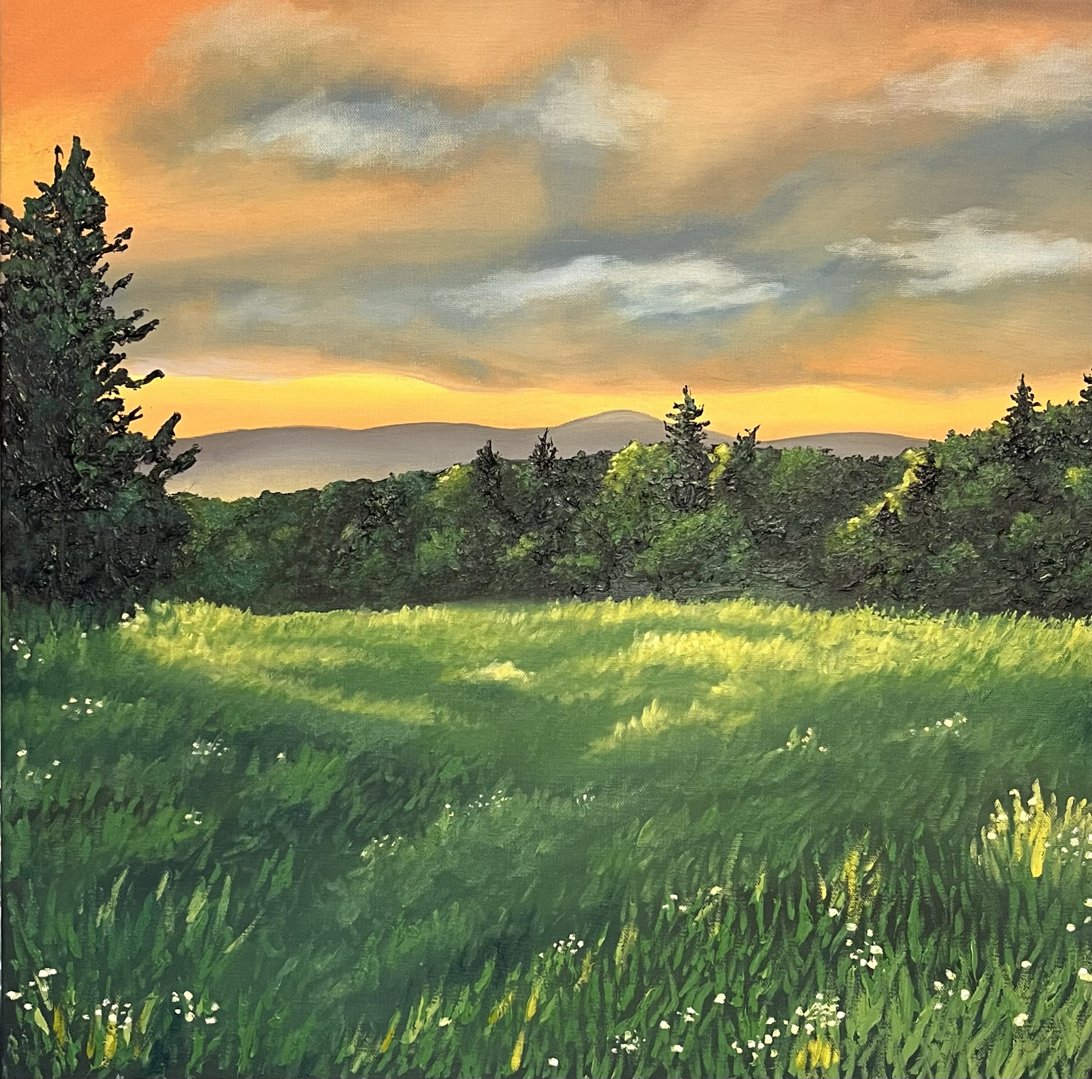“Morning Fields”; 10”×10” oil on canvas